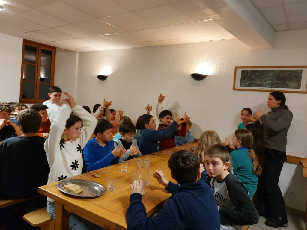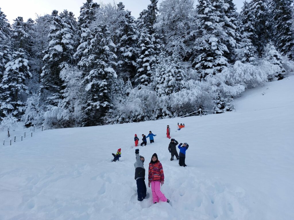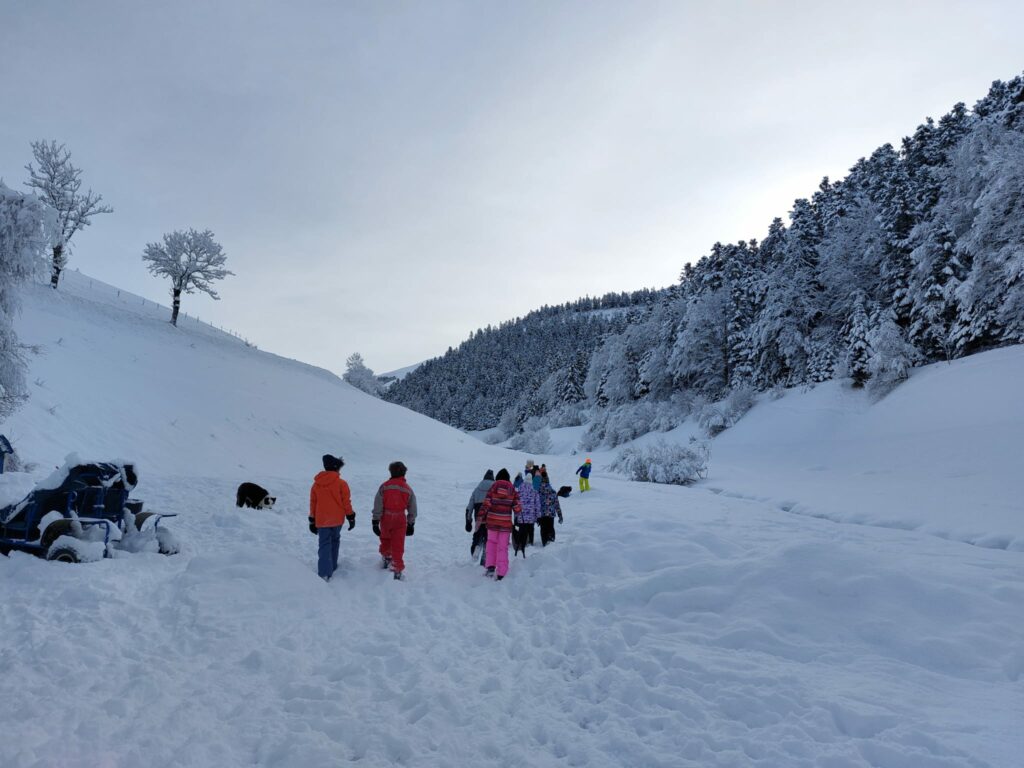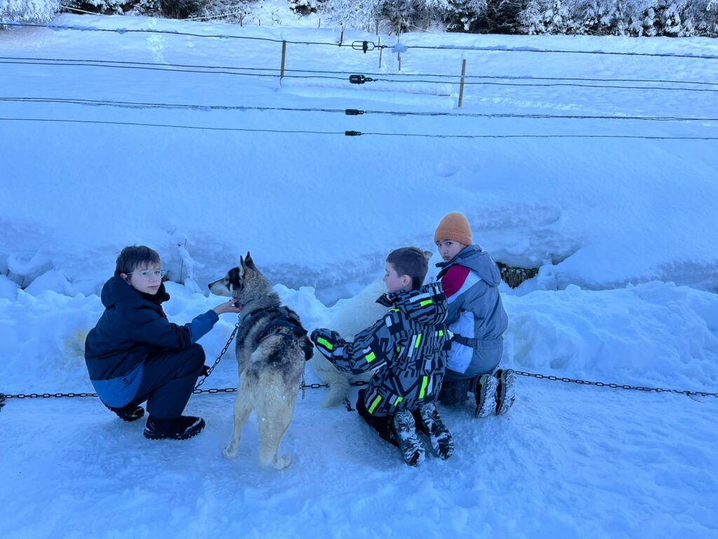 JOUR 3 :Au programme : une activité Sherpa avec les chiens de traîneau, puis une randonnée depuis Estarvielle jusqu’à Loudenvielle, agrémentée d’un jeu de piste. Comme vous pouvez le constater, la neige est bien au rendez-vous dans les Pyrénées, offrant un cadre splendide pour toutes les activités. Le soir, écriture des cartes postales et quelques jeux après le dîner balade nocturne.